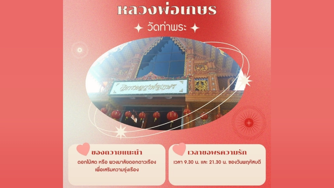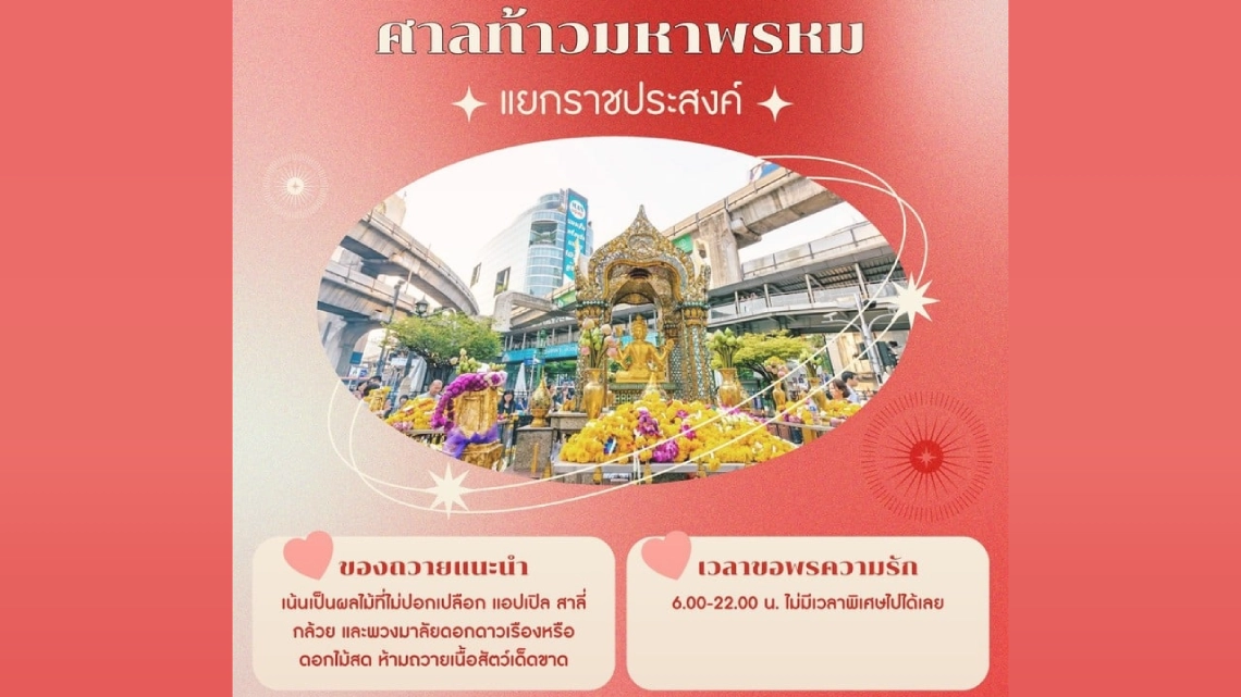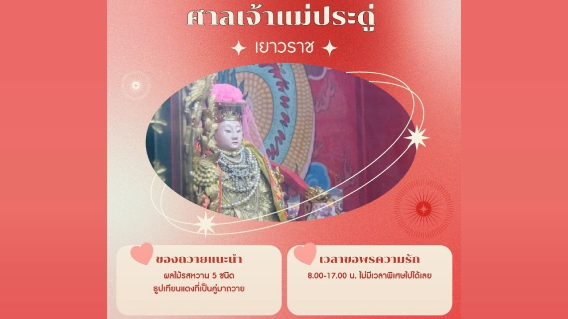 เพื่อให้ได้ความสะดวกสบาย, เวลาที่เหมาะสมในการขอพรความรักคือ 10.00-18.00 น. ทำให้ทุกคนสามารถมีโอกาสขอความรักได้โดยไม่มีเวลาพิเศษ.